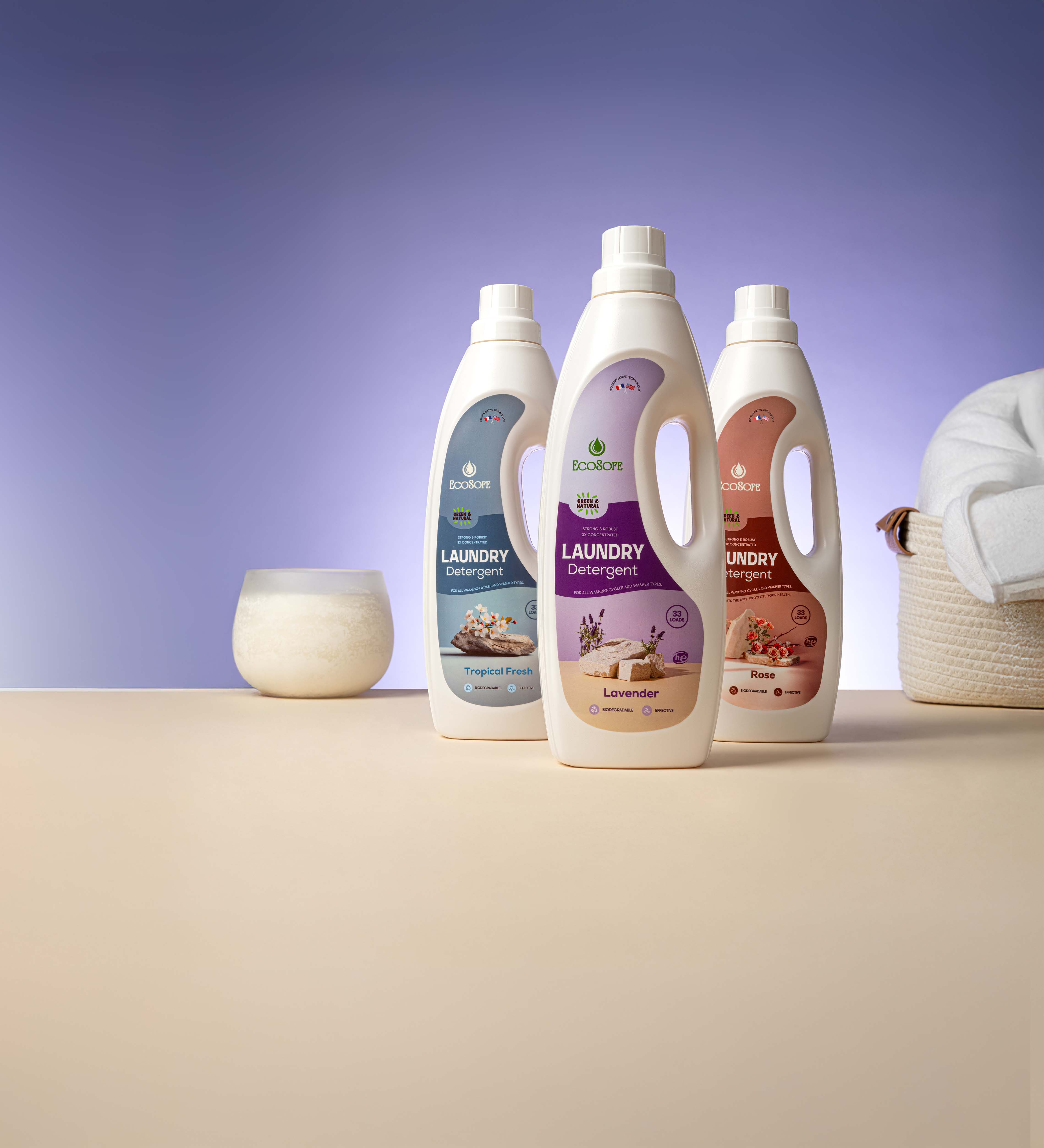 Revitalize your laundry with eco-friendly detergents in tropical, lavender, and rose fragrances